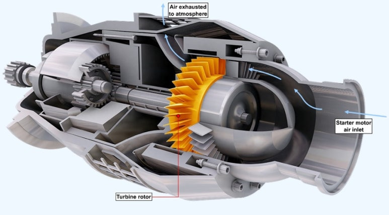 • 공기식 스타터(Air Turbine Starter, ATS): 압축공기로 터빈을 돌려 엔진을 회전시킵니다.
