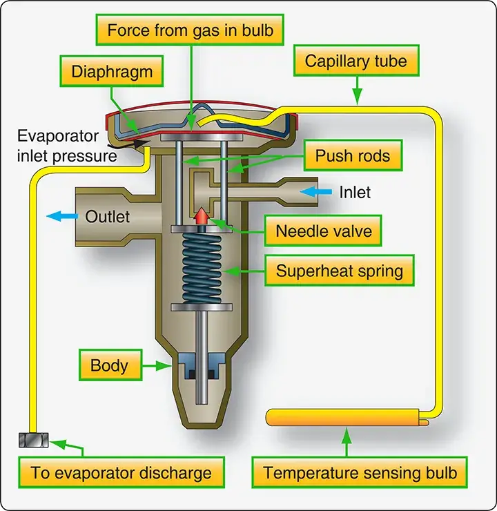 압력을 순간적으로 낮추는 장치로, 냉매는 이 밸브를 지나면서 온도와 압력이 급격히 떨어집니다.